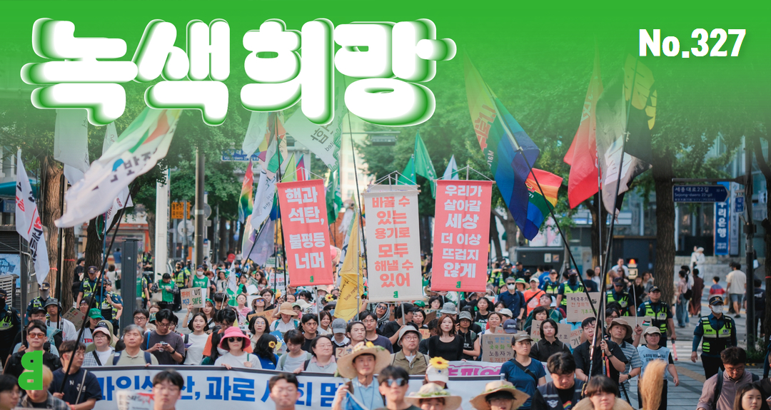 #녹색희망 #기후정의행진 #사육곰구출 #체코원전불공정협정 #위어도우 #해양쓰레기 녹색희망 327호 기후정의를 향한 발걸음🦶, 10월에도 쭈욱!